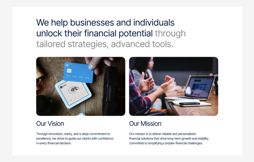 An About Us section introduces a company, brand, or team to the audience.