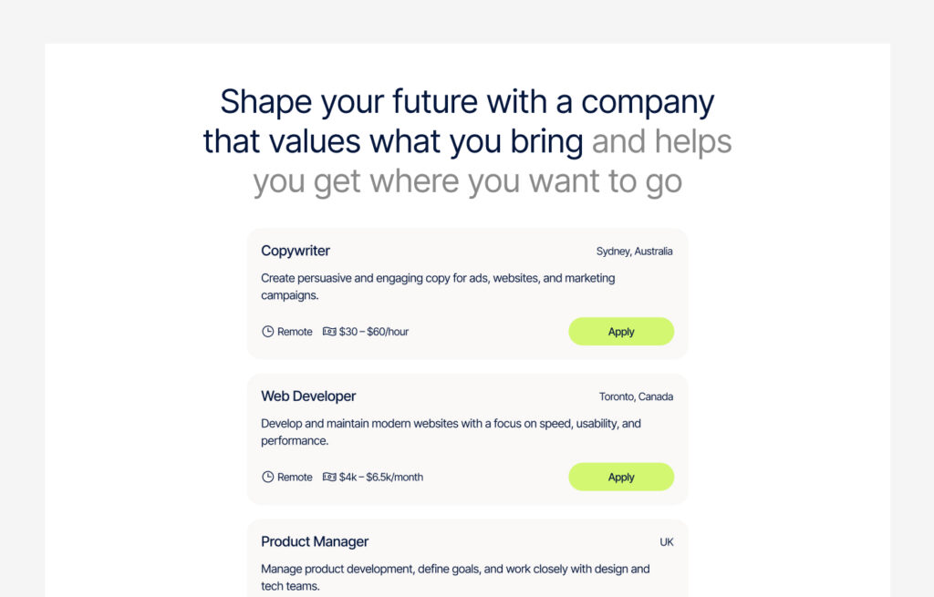 A career section shows job opportunities available at a company.