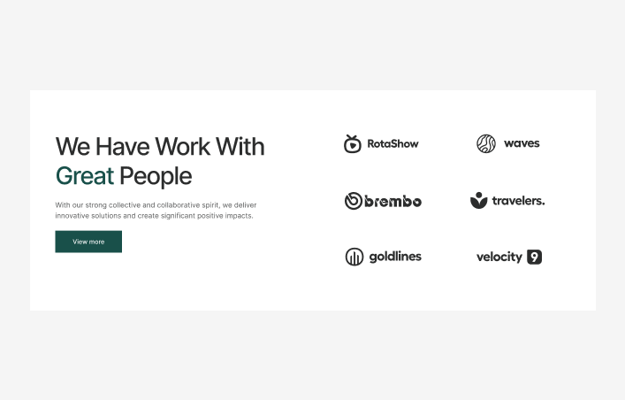 A client section highlights the brands or people who use or trust your service.