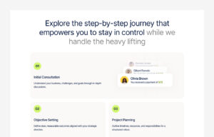 How It Works section explains the steps to use a product or service.