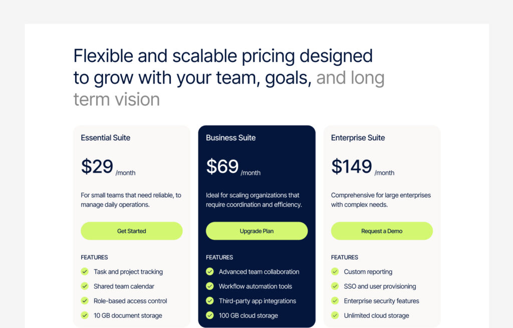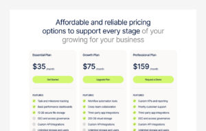 pricing section shows the cost and features of different plans or services.