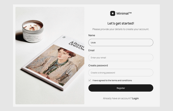 A register section is a part of a website or app where users can create an account by filling out a form.