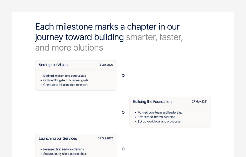 roadmap section shows the planned and completed milestones for a product or project.