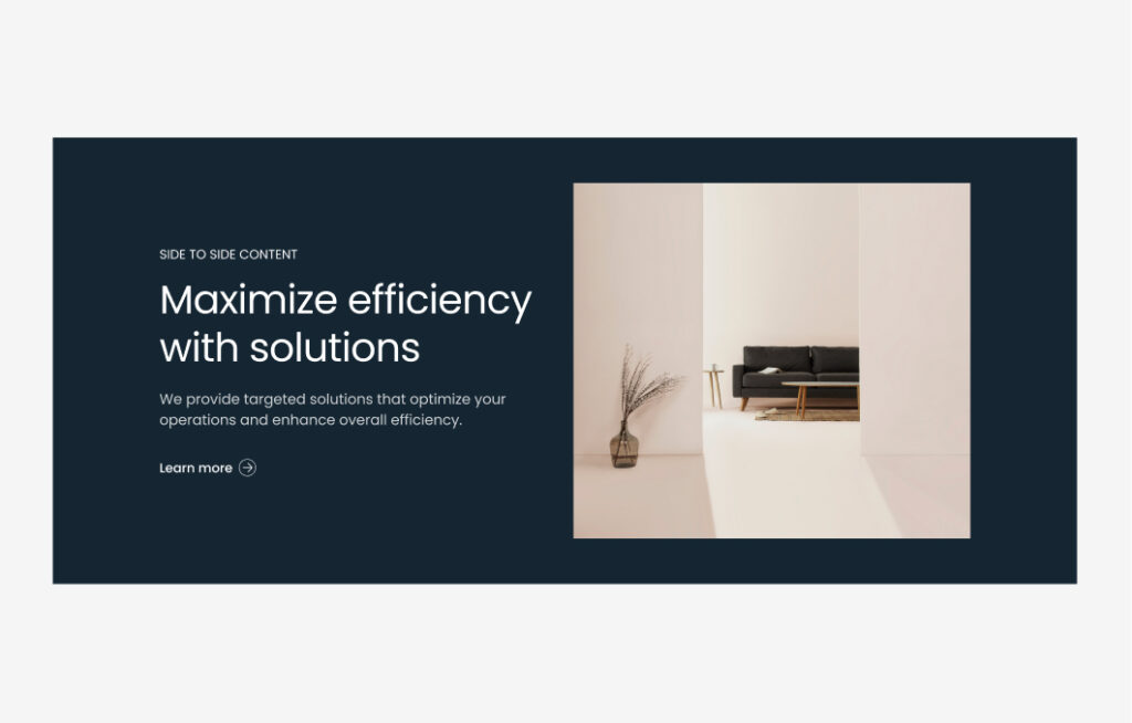 side-to-side content section displays two elements side by side, usually in two columns.