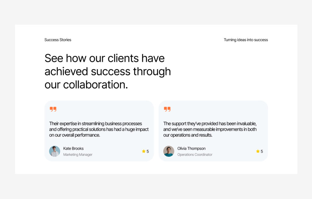 testimonial section displays feedback from happy customers or clients.