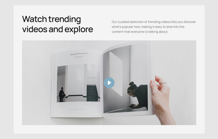 A video player section allows users to watch videos directly on a website.