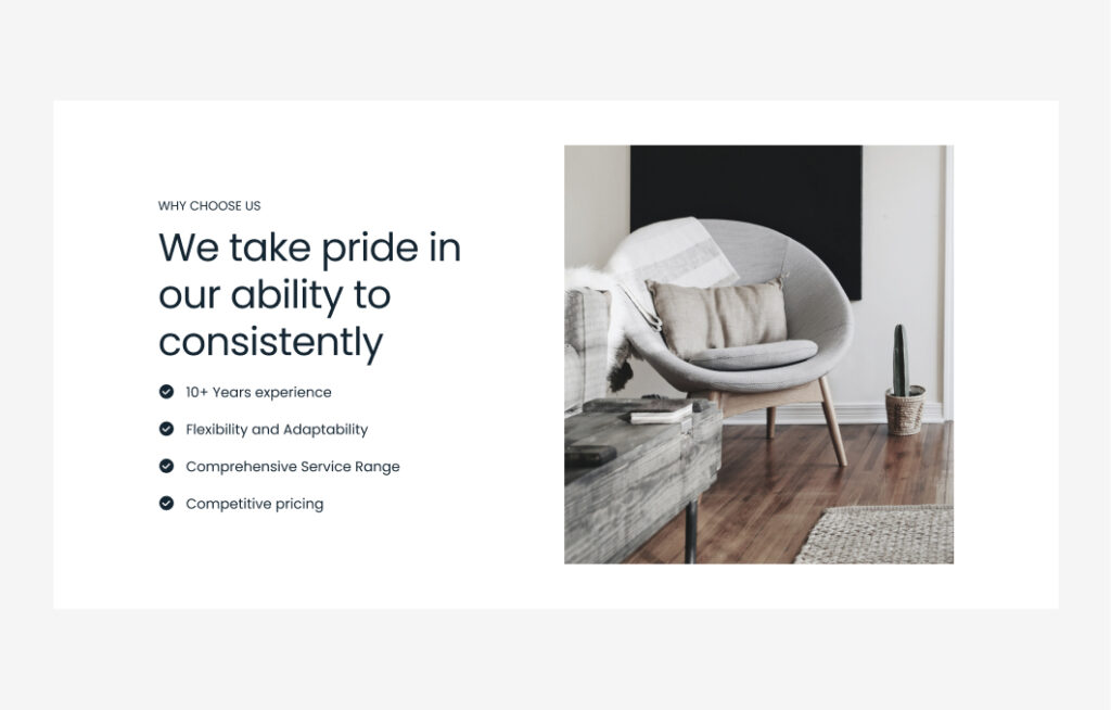 Why Choose Us section highlights the key reasons customers should pick your product or service.