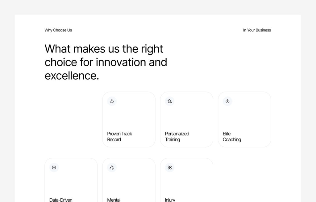 A Why Choose Us section highlights the key reasons customers should pick your product or service.